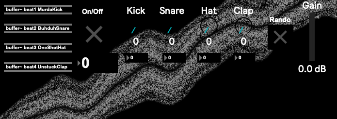 Random Beat Generator utilizes random number generators to trigger samples of any length in its 4 available slots. Comes preloaded with stock Ableton drum hits but users can drag and drop any sample into the 4 slots on the left.